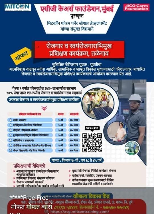 तळेगाव दाभाडे: प्रतिनिधी कॊशल विकास केन्द्र,तळेगाव येथे एसीजी केअर्स फौंडेशन, मुंबई व मिटकॉन कौशल्य...