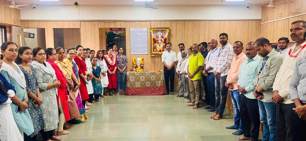 तळेगाव दाभाडे नगर परिषद कार्यालयात लोकशाहीर अण्णाभाऊ साठे यांच्या जयंतीनिमित्त मुख्याधिकारी विजयकुमार सरनाईक यांच्या हस्ते त्यांच्या प्रतिमेस पुष्पहार अर्पण करून अभिवादन करण्यात आले. यावेळी उपमुख्याधिकारी ममता राठोड, लेखापाल जयश्री साईखेडे, लेखा परीक्षक श्रुती सोमवंशी, आस्थापना प्रमुख नेहा पाटील, मिळकत विभागप्रमुख मधुरा जोशी, संगणक अभियंता सोनाली सासवडे, विद्युत अभियंता स्मिता म्हस्के, स्वच्छता निरीक्षक दत्तात्रय ढवळे, सुनिल काळकुटे, लिपिक ज्योती पेंडसे, वैशाली आडकर, भास्कर वाघमारे, कर संकलन लिपिक आदेश गरुड, प्रविण माने, प्रफुल्ल गलीयत, संदेश गरुड, मयूर ढिलोड, आशिष दर्शले, प्रविण शिंदे, विलास वाघमारे, विशाल लोणारे, अरविंद पुंड, लिपिक रोहित भोसले, बाळासाहेब पवळे, उषा बेल्हेकर, शिला वेहळे, अतुल पठारे, बुद्धभूषण काकडे, अश्विनी गरुड, एन.यु.एल.एम. समन्वयक विभा वाणी, शिपाई अनिल इंगळे, रुपेश देशमुख, चंद्रशेखर खंते, राजेश भुजबळ, कुणाल अढागळे, सुरज शिंदे, शितल कडूसकर, अनिता कांबळे, नवाज शेख आणि कर्मचारी वर्ग तसेच अण्णाभाऊ साठे मंडळाचे शहराध्यक्ष बाळासाहेब अढागळे, सुनिल वाघमारे, कर्मचारी संघटनेचे माजी अध्यक्ष मुरलीधर टकले उपस्थित होता. यावेळी भास्कर वाघमारे यांनी अण्णाभाऊ साठे यांचा जीवनाचा अल्पपरिचय करून दिला.